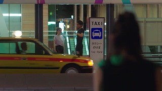 「(ゴルフ?)はい、わかりました」とハナ。不動の言うことは絶対。不動もゴルフをする気なんてまったくないのに。ちなみに不動のうしろのビルは汐留の資生堂な。ハナと不動はどれだけ走ってきたんだと。ゴルフの練習場に行くために二人がタクシーに乗るところを
